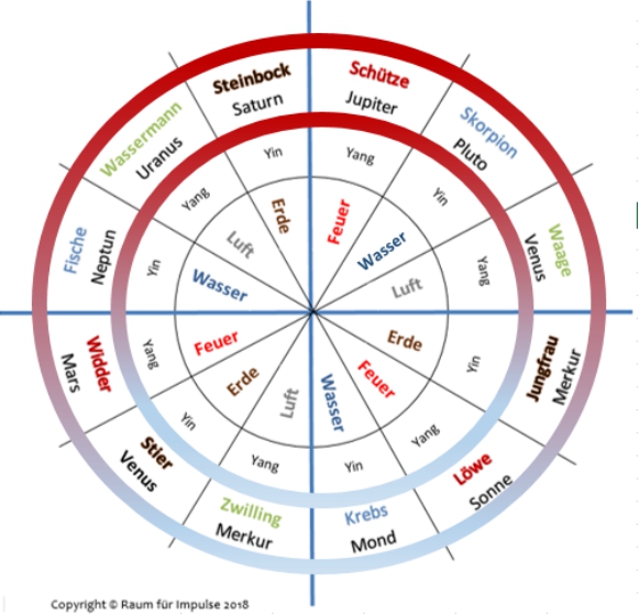 der Tierkreiszeichen einem der vier Elemente